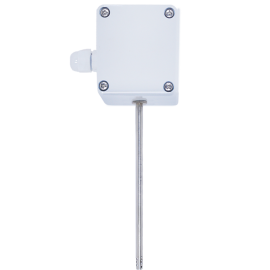 Temperature sensor suitable for measurement of air or gas flowing in ventilation channels, applied mainly for ventilation and air-conditioning systems. Resistor placed in perforated light alloy sheath, joined to connection box made of anti-static material.... max. temperature +85 °Csensing elements Pt 100, 500, 1000, Ni1000, Ni100