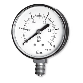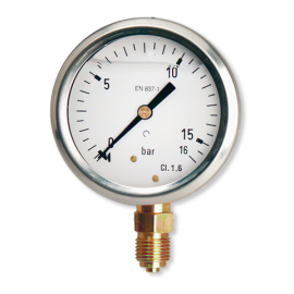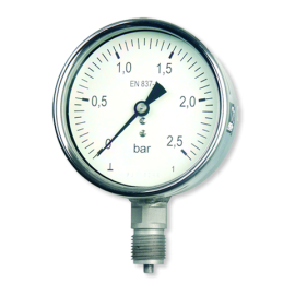 Standard pressure gauge designed to measure pressure of non-aggressive media - mechanism of copper or brass alloys and in places where atmospheric pressure does not charge. Dedicated to measure water pressure and installations in water... gases and liquid pressure measurement up to 400 bar