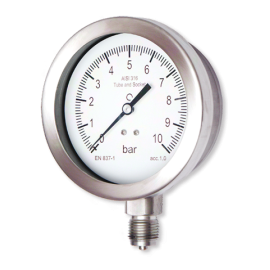 Manometers with liquid filling (glycerine or other) intended for applications where vibrations of elements or the entire device may occur. The occurrence of this phenomenon has a negative impact on the life of the entire... measurement of liquid and gases pressure up to 1000 bar