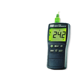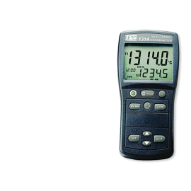 Portable temperature measuring meter with an universal input, equipped with internal storage, supported popular thermocouple types. TES-1316 includes double input. TC inputs: K, J, E, T, R, N, S