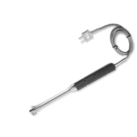 The sensor measures the surface temperature. The measurement can be performed momentarily or continuously. The sensor with the handle has a cable with a mini plug for connection with a portable temperature meter. measuring probes for temperature meters