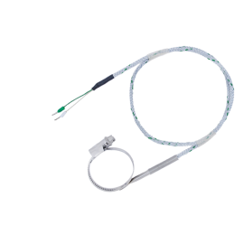 Temperature sensor with band clamp for measurement of pipes and shafts. The band clamp enables sensor installation on different types of pipes and shafts which are to be measured. temperature max. 400 ° C