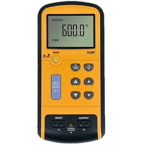 DC80T calibrator for thermocouple is used to measurement and simulation of 8 TC types (J, K, T, E, R, S, B, N) and the voltage with range -10mV up to +75mV.