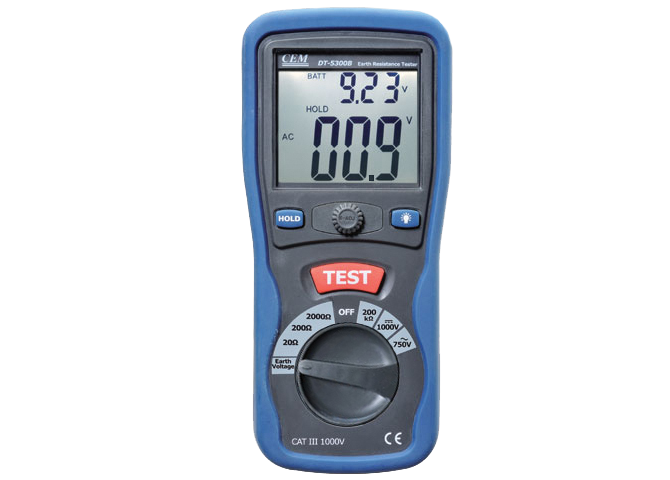 DT-5300B is a professional earth resistance meter installed in a rubber casing resistant to mechanical damage. measure has a large LCD display with backlight and current battery indication. Measurement is made by three-wire, examining tested earthing rods with two references. The meter measures the interference voltage ground currents generated by stray, and has the ability to compensate for lead resistance measured by the potentiometer zero.