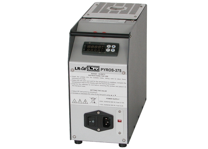 The Pyros-375 calibration furnace is used to check and calibrate thermoelectric and resistance sensors in the range from ambient temperature to 375 ° C. It has a well with a diameter of ø25 mm and a depth of 150mm, in which replaceable measuring blocks can be mounted. Standard measuring block has holes ø3.2; 4.8; 6.4; 11.1 mm. If there is a need to calibrate sensors with other non-standard diameters, it is possible to make an additional measuring block, or to select an appropriate one according to the catalog card. Additionally, it can be equipped with a waterproof case (IP65) or a transport case.