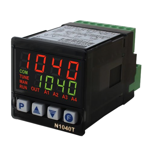 The N1040 controller is a modern PID controller with a timer function. It has 3 control relays, an SSR output and a digital input to activate the timers. The controller is characterized by a modern housing with two displays for the measured and set value, IP65 front panel, quick connectors for connecting terminal strips with control cables and a USB connector. Timer functions control the relays according to various programmable operating modes.
