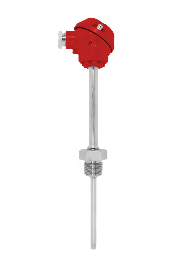 Temperature sensor applied in industrial pipelines, pressure and other tanks for temperature measurement of liquids and gases. Sensing element is placed directly in the thermowell.