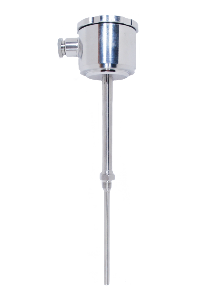 Temperature sensor suitable for pipelines, pressure tanks and other devices used in food and pharmaceutical industry. This stainless steel sensor has National Institute of Hygiene (PZH) attestation.