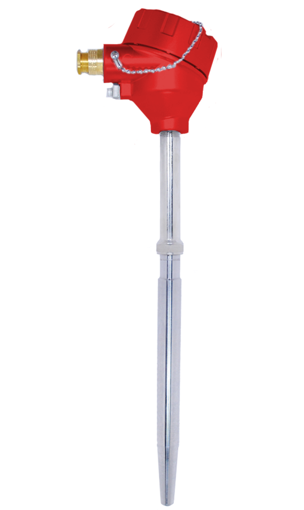 Temperature sensor suitable for measurement of liquid and gaseous media. It has a replaceable measuring insert adequate for various industrial applications. Replacement of the measuring insert does not cause the technological installation damage. Spring-loaded insert ensures an excellent connection with the bottom of the sensor thermowell. Temperature sensor has ATEX approval for application in hazardous area: I M2 Ex d I Mb (with connection head NS) II 2G Ex d IIC T6 Gb II 2D Ex t IIIC T85ºC Db IP66