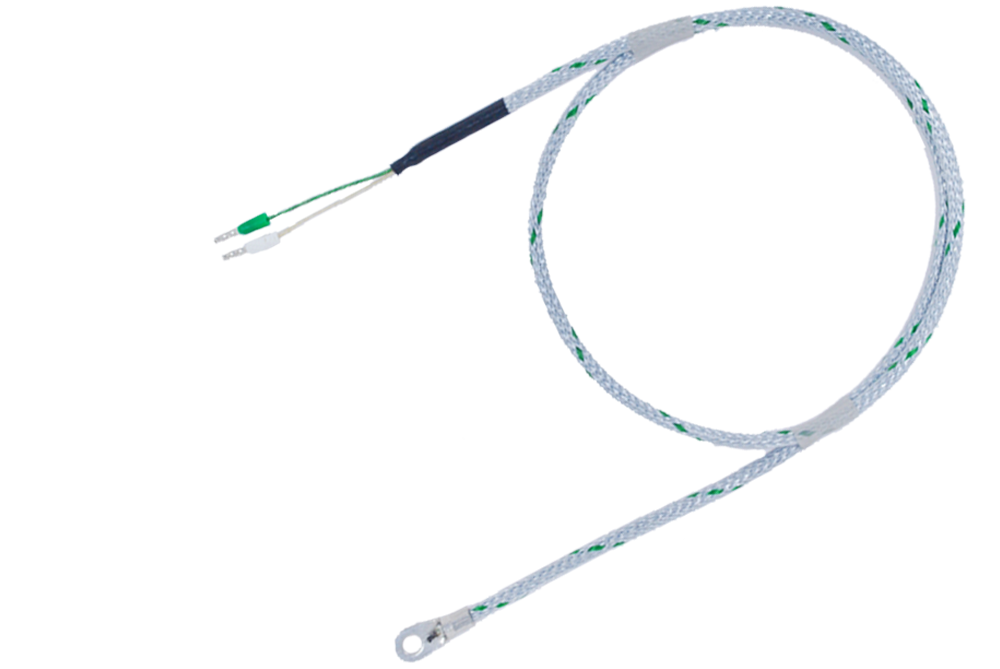 Temperature sensor suitable for surface measurement. Hot junction has bigger surface of heat reception because of the connected copper plate or eyelet. This improves sensor contact with the surface.