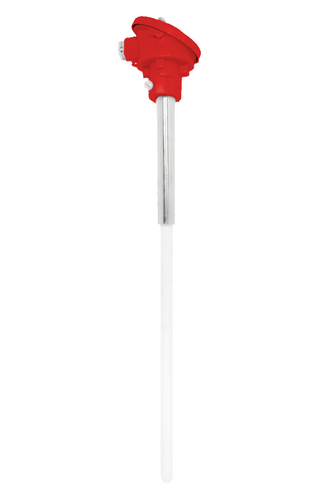 Temperature sensor suitable for measurement of aggressive media, especially in petrochemical and glass industry.