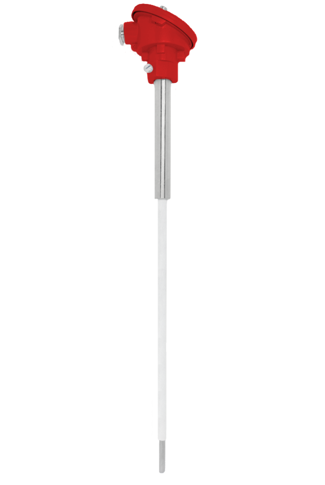 Temperature sensor suitable for measurement of liquid glass. It has ceramic protection tube and dusted platinum layer. This sensor can be equipped with three thermocouplesmeasuring temperature on different depths.