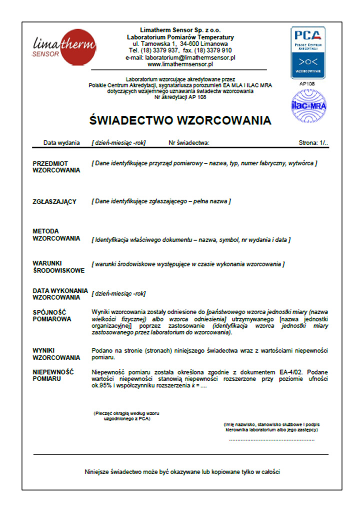 • częstotliwość i jakość sprawdzeń okresowych między wzorcowaniami;